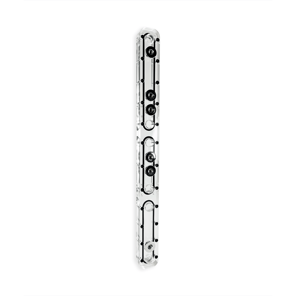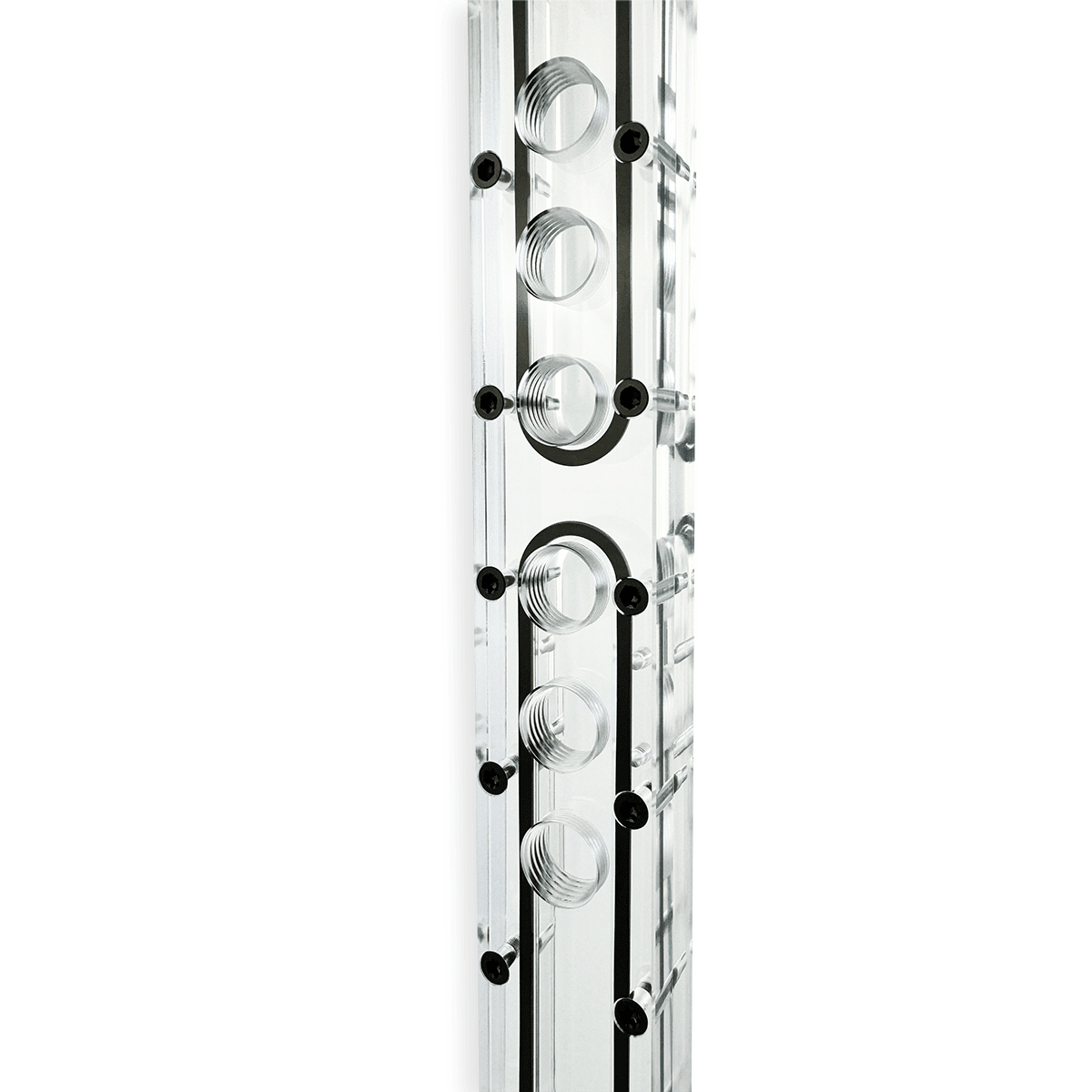 Gefertigt aus hochreinem Acryl, dient sie als zentraler Verteiler, der nicht nur die Verrohrung vereinfacht, sondern auch einen atemberaubenden Blickfang in Ihrem Gehäuse schafft. Die Distroplate ist speziell für die Montage an 360-mm-Radiator-Positionen konzipiert und sorgt für einen optimierten, störungsfreien Fluss des Kühlmittels.