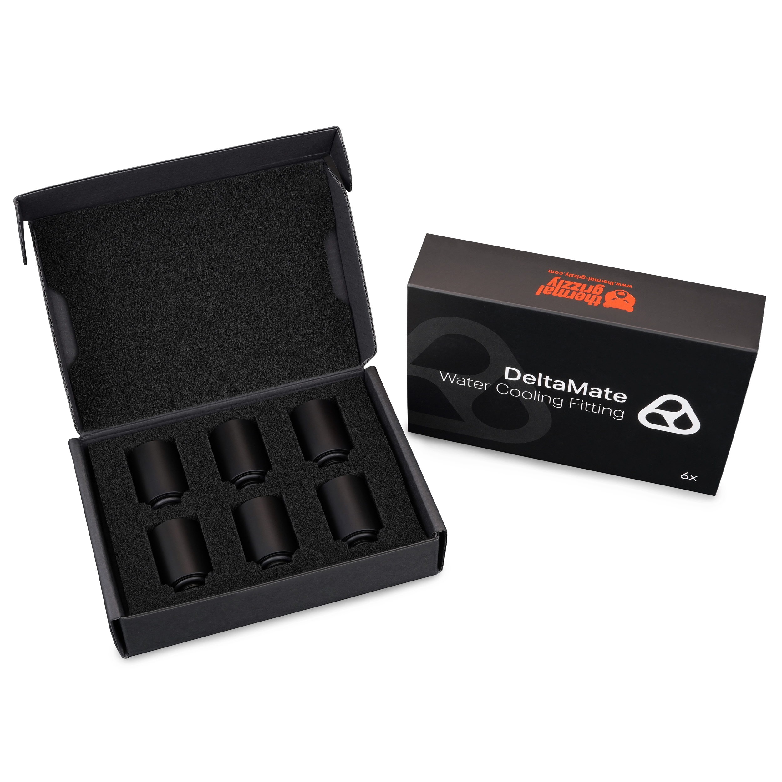 Die DeltaMate-Extender Fittings sind Wasserkühlungs-Anschlüsse für die einzelnen Komponenten einer Custom-Wasserkühlung. In gewohnter Thermal-Grizzly-Qualität werden die Extender Fittings maschinell aus Messing hergestellt. Messing bietet als Legierung aus Kupfer und Zink den Vorteil, dass es anodisch kompatibel mit anderen Metallen und dabei sowohl härter als auch korrosionsbeständiger als Kupfer ist. Die Dichtungsringe (O-Ringe) werden aus dem besonders elastischen sowie Ozon- und UV-beständigen EPDM (Ethylen-Propylen-Dien-Kautschuk) gefertigt. Das robuste Design der DeltaMate-Fittings ermöglicht die Montage mit einem 8-mm-Innensechskantschlüssel. Der einheitliche Außendurchmesser aller DeltaMate-Anschlüsse ermöglicht eine nahtlose Integration der einzelnen Produkte.